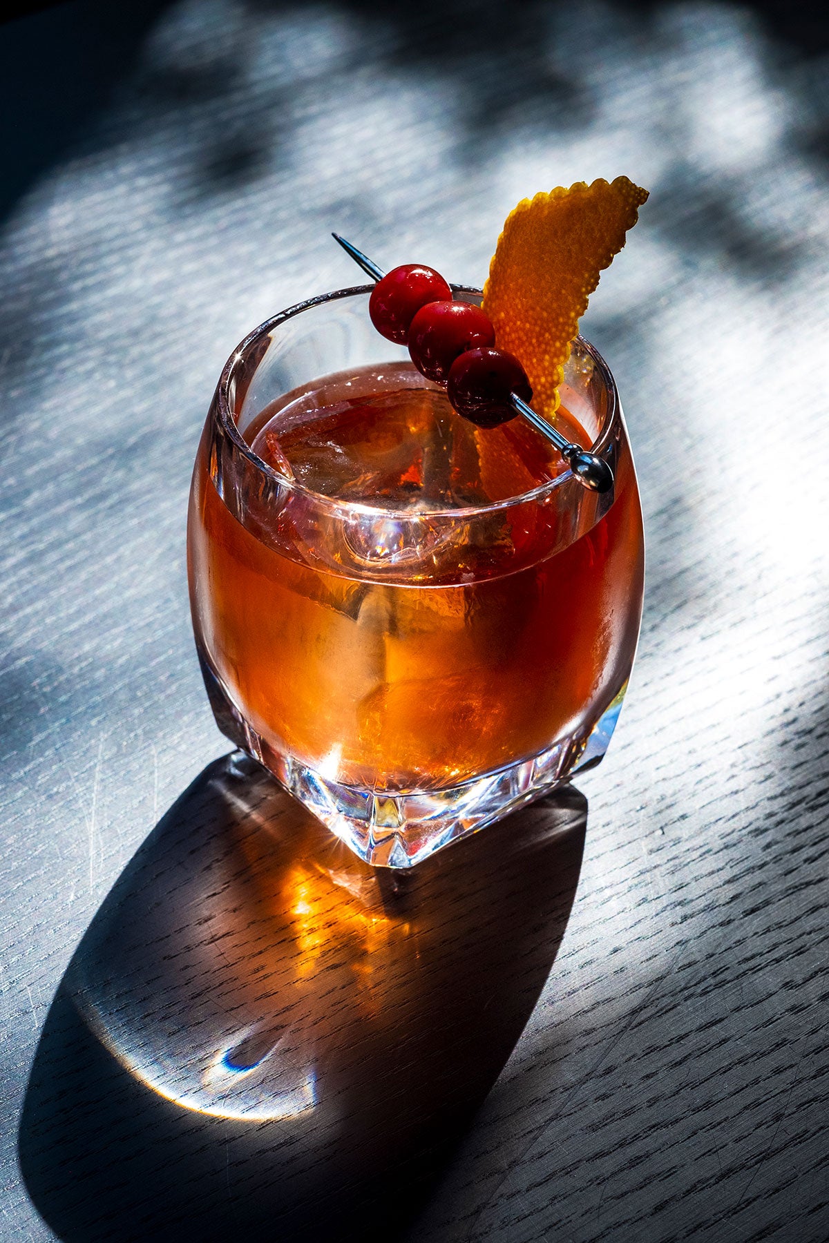 A modern reinterpretation of the classic old fashioned glass, designed for whiskey and bourbon lovers who enjoy their spirit chilled on the rocks (or those neat drinkers who want a little heft in their pour). And for those who revel in the crafted cocktail, the tumbler features a core innovation. Inside the glass, extruded chevrons radiate from the center, offering friction to grip ingredients for muddled-in-glass drinks.