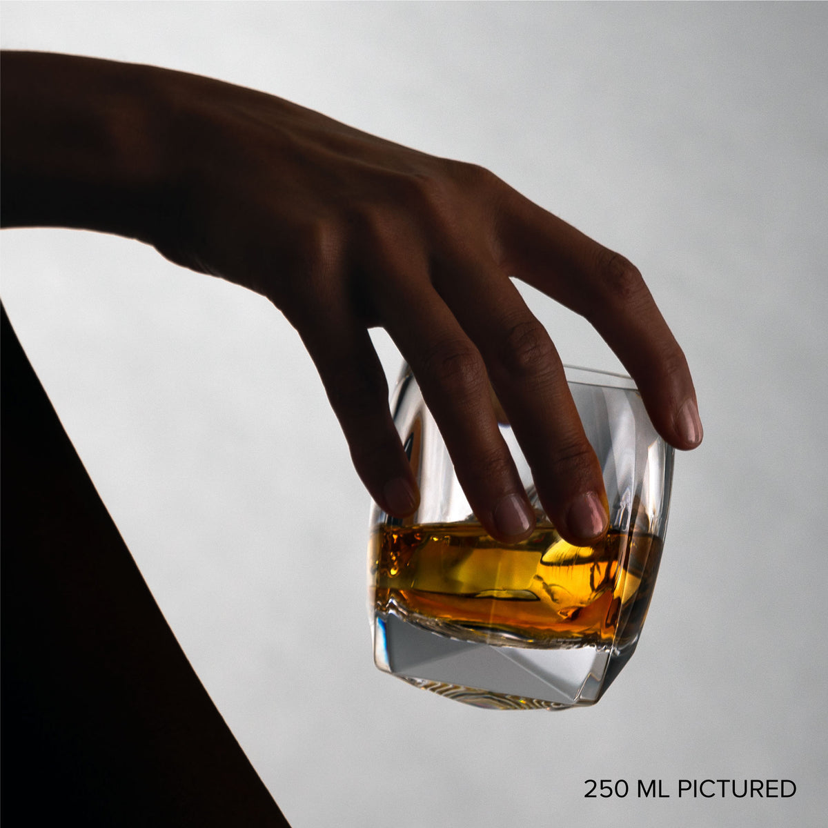 The tumbler is available in two standard sizes: a 250 ml (or OF) and a 350 ml (or DOF). Which size is right for you will depend on how heavy you like your glass and the intended use. Traditionally speaking, the DOF (or double old fashioned glass) is called for when a drink requires larger amounts of ice or is composed of a greater volume of lower alcohol content. But we know some folks just like a big glass in their hand.